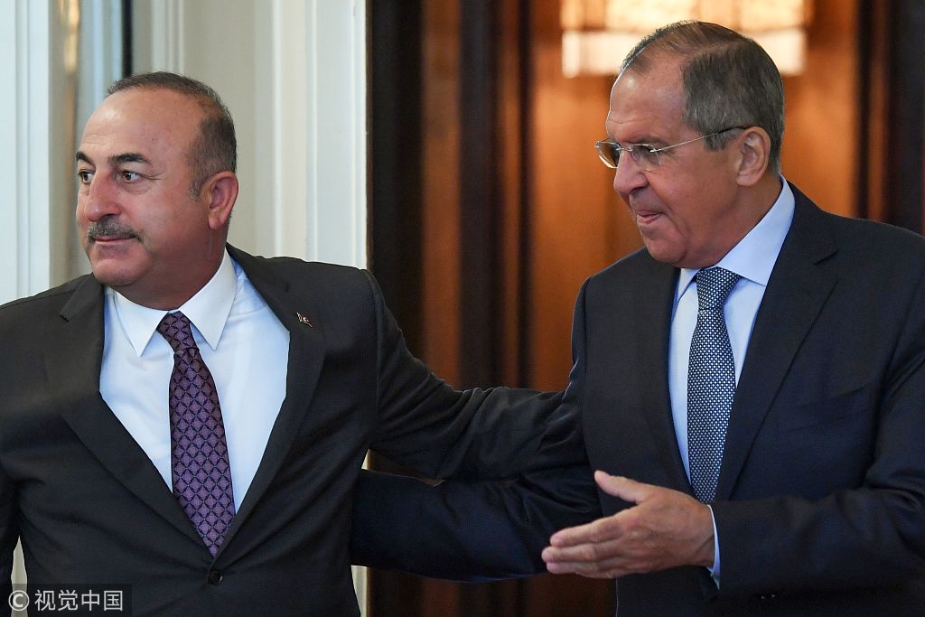 当地时间2018年8月24日,俄罗斯莫斯科,俄罗斯外长拉夫罗夫与土耳其外长恰武什奥卢会谈。