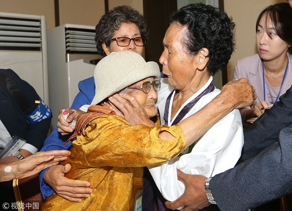 当地时间2018年8月24日,朝鲜金刚山,朝韩离散家属第二轮团聚活动在金刚山举行。韩方离散家属抵达金刚山,见到了梦中思念的朝鲜家属。