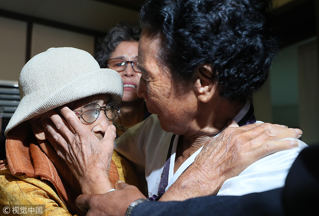 当地时间2018年8月24日,朝鲜金刚山,朝韩离散家属第二轮团聚活动在金刚山举行。韩方离散家属抵达金刚山,见到了梦中思念的朝鲜家属。