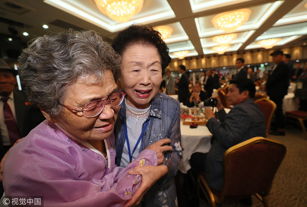 当地时间2018年8月24日,朝鲜金刚山,朝韩离散家属第二轮团聚活动在金刚山举行。韩方离散家属抵达金刚山,见到了梦中思念的朝鲜家属。