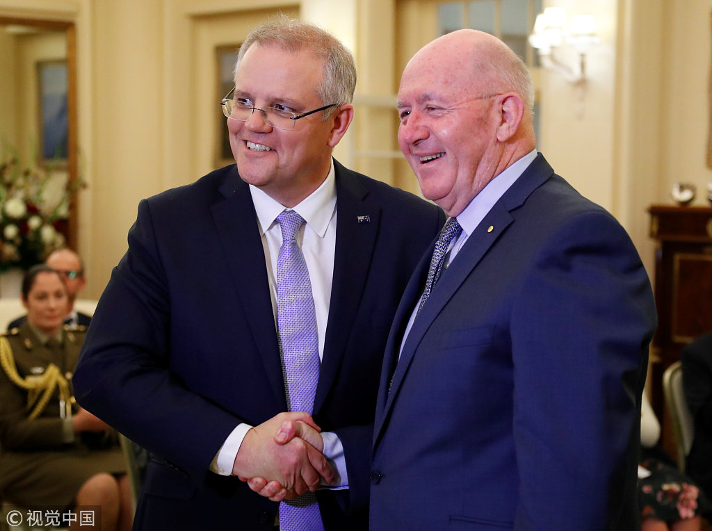 当地时间2018年8月24日,澳大利亚堪培拉,澳大利亚新任总理莫里森宣誓就职。