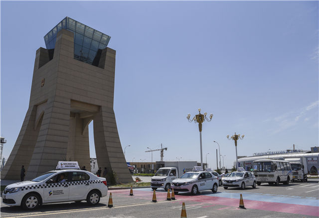 在中哈霍尔果斯国际边境合作中心,来自哈萨克斯坦的汽车排队进入中方一侧(8月4日摄)。新华社记者胡虎虎摄