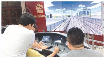 泰国当地学员在“鲁班工坊铁院中心”的动车组模拟驾驶控制台上操作。(图均由受访者提供)