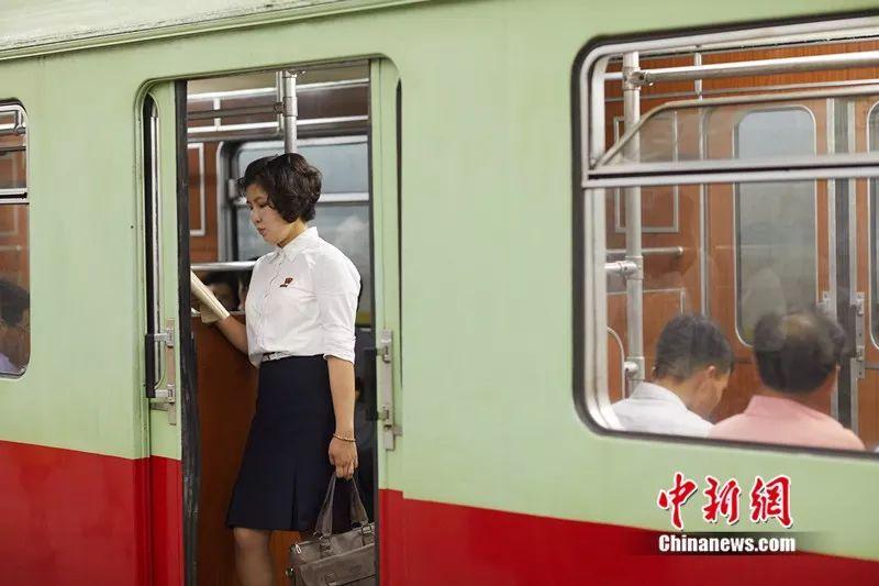 朝鲜姑娘站在地铁上。《中国新闻周刊》记者甄宏戈摄