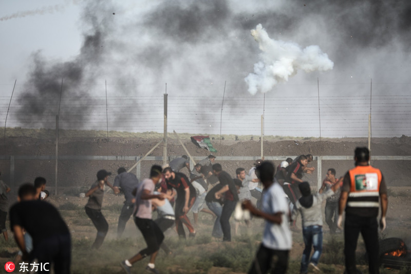 巴勒斯坦示威者加沙边境抗议 浓烟遮天蔽日似夜晚