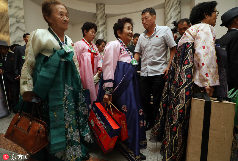 当地时间2018年8月25日,朝鲜金刚山酒店,朝韩离散家属第二轮团聚活动进入第二天。朝韩离散家属在酒店单独会面并将共用午餐。