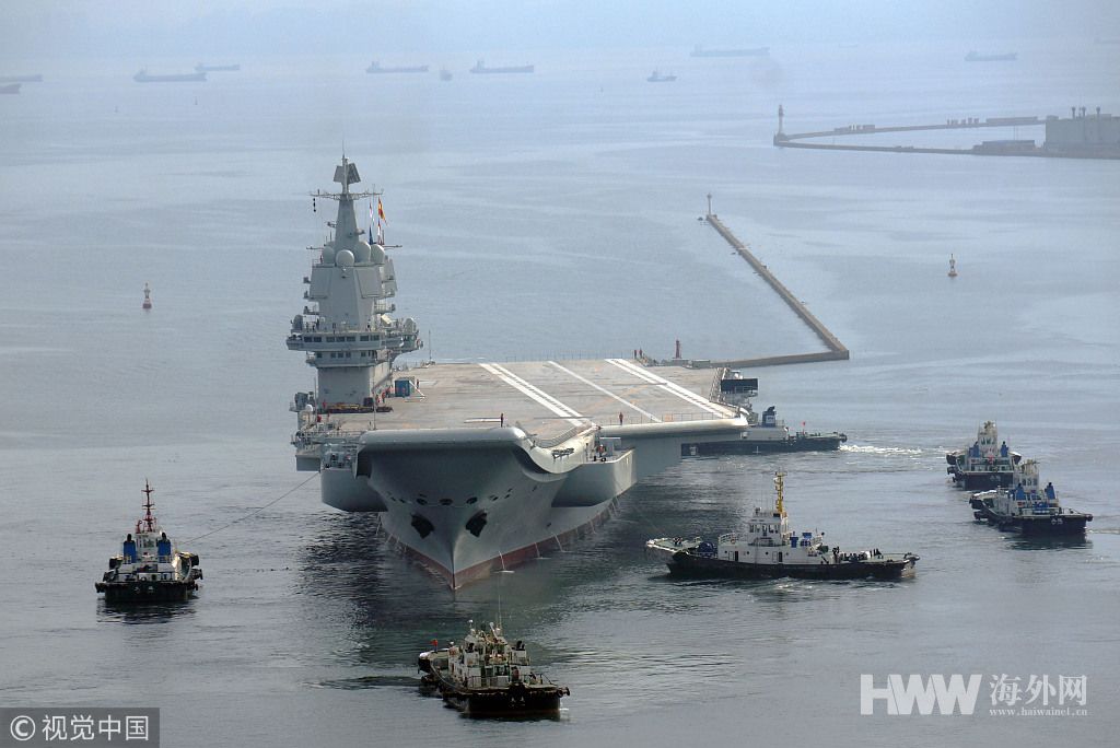 国产航母离开码头 开始第二次试航