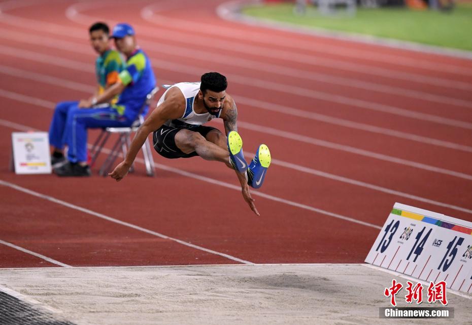 8月29日晚间,雅加达亚运会男子三级跳远决赛,印度选手Arpinder Singh以16米77的成绩获得冠军。中新社记者 侯宇 摄