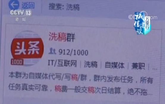 伪原创软件“纸牌屋”工具客服:“一年198(元),包含网站上所有的伪原创工具,还有原创度检测工具等所有工具的,它是不限次数,而且不需验证码。” 记者将生成的稿件复制粘贴到可以进行原创检测的网页,稿件的原创度很快检测出来,随后只需根据提示的重复部分进行修改,并将部分不通顺的语句调整,不到10分钟,一篇“洗过的稿件”就完成了,不仅不用自己辛苦找素材,已经成为爆文的文章,再爆的几率也大了许多。 在这些QQ和微信群里,几乎时时有人发布信息,只要标明所需字数、题材、原创度这三项,自然会有写手认领。由于写手众多,价格也被压得很低。 网络写手 梦想火箭:“洗稿100个字一块钱,如果要求高点价格就高,最高大概1000字30元吧。” 写手的上级就是工作室或者公司,他们往往运营着多个自媒体账号。 自媒体运营培训老师 应天:“在这个行业真正做得顶尖的都是做批量运营的,不是玩一个号的,而是几十、上百的账号,自媒体做得好的不是一个月一万两万,而是八九万,十几万的也有。”