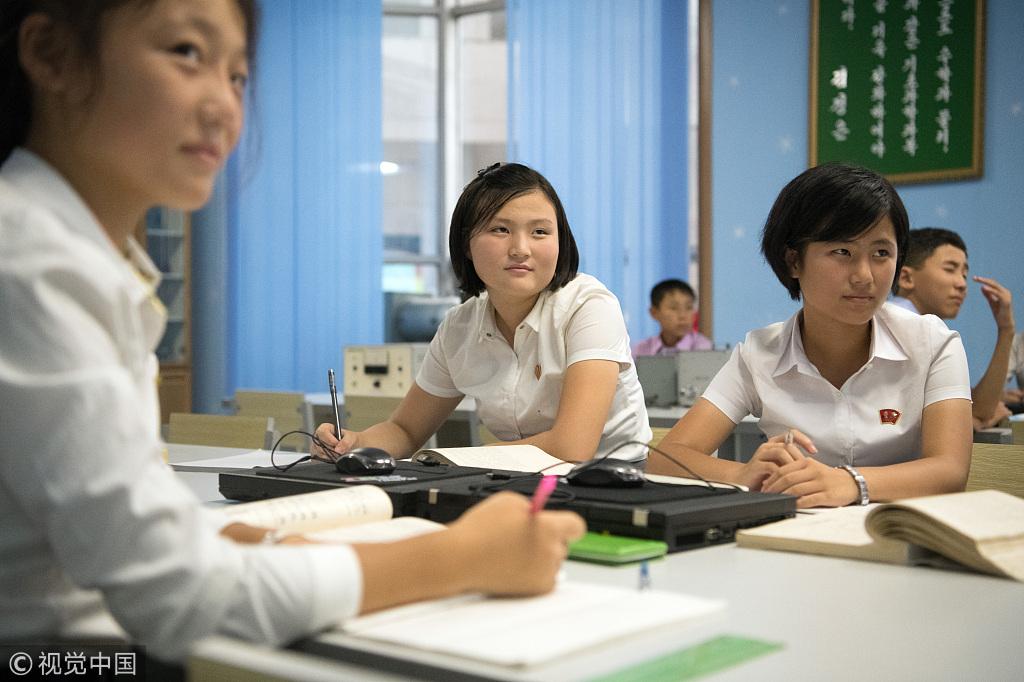 当地时间2018年8月23日,朝鲜平壤,学生在万景台学生少年宫听课。