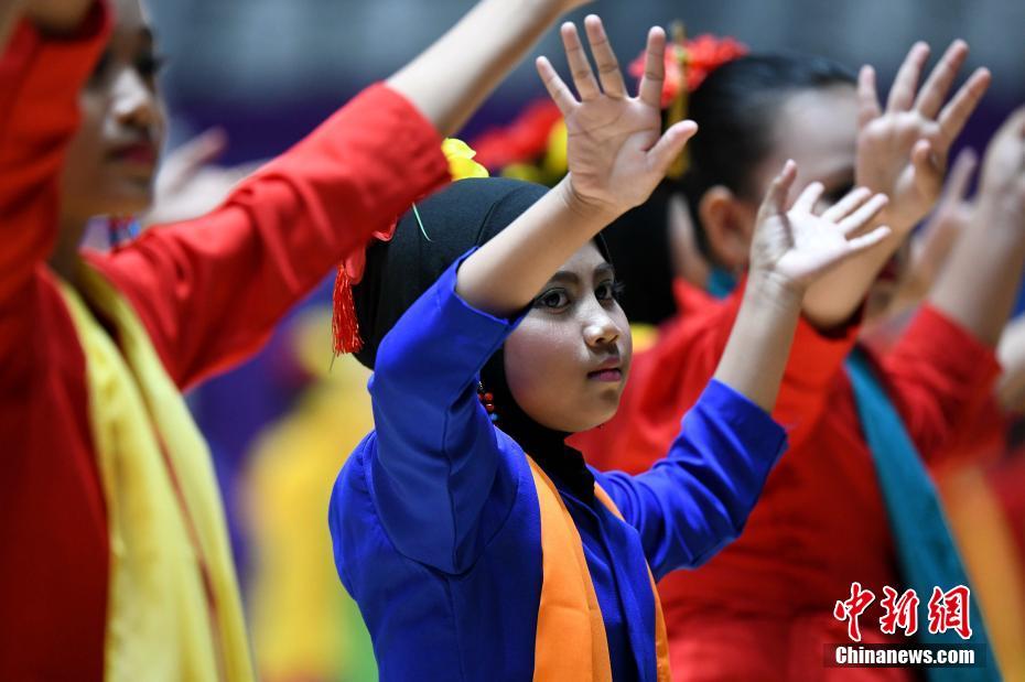 8月30日,印尼少年身着传统服饰亮相亚运赛场,为观众带来别具特色的印尼传统舞蹈。中新社记者  王东明 摄