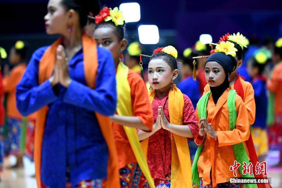 8月30日,印尼少年身着传统服饰亮相亚运赛场,为观众带来别具特色的印尼传统舞蹈。中新社记者  王东明 摄