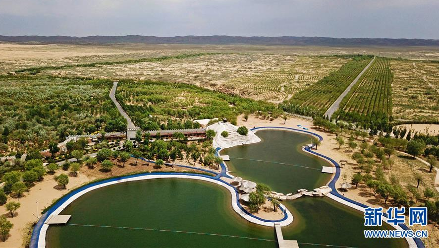 宁夏灵武白芨滩国家沙漠公园(5月25日无人机拍摄)。 新华社记者 王鹏 摄