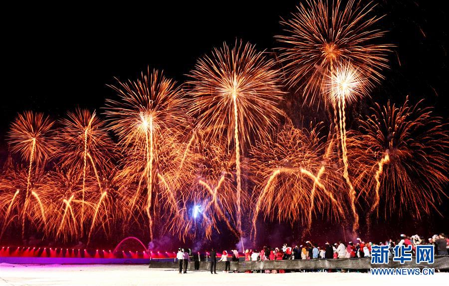 8月30日,在中马友谊大桥开通典礼现场,烟花在大桥上空绽放。新华社发(杜才良摄)