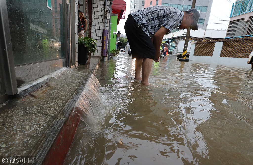 当地时间2018年8月31日,韩国光州,当地遭遇暴雨引发洪涝。