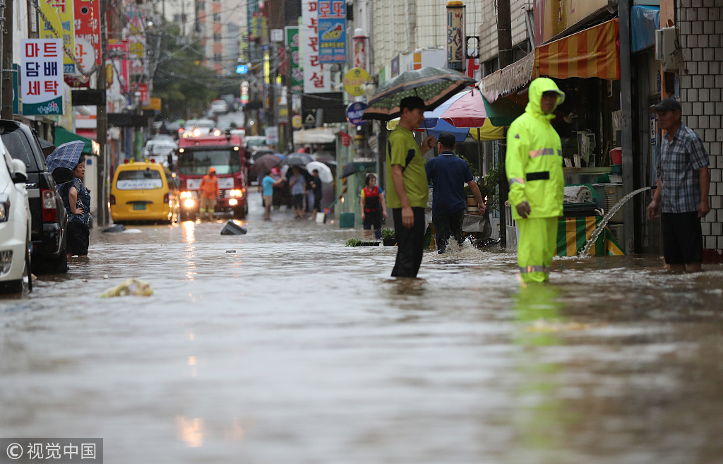 当地时间2018年8月31日,韩国光州,当地遭遇暴雨引发洪涝。