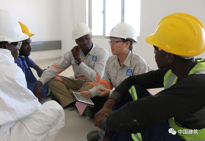 除了果敢诚信的中建人,项目还有一群黑人朋友。相对于国内工人,黑人朋友缺乏系统的理论学习和纯熟的技术,却不缺匠人精神。他们好学肯干,吃苦耐劳,试验取样,现场测量,敬业的他们从零杂小工逐步成长为技术工人。