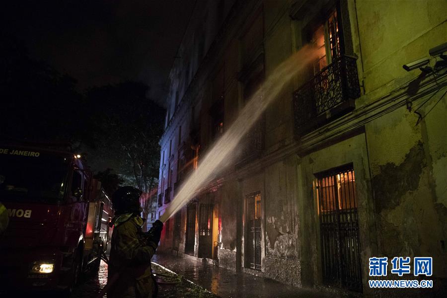 9月2日,在巴西里约热内卢,消防员在火灾现场灭火。 新华社记者李明摄