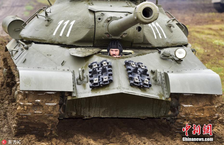 当地时间2018年9月1日,捷克Lesany,当地举行坦克日活动,各式旧式军演坦克被展出。
