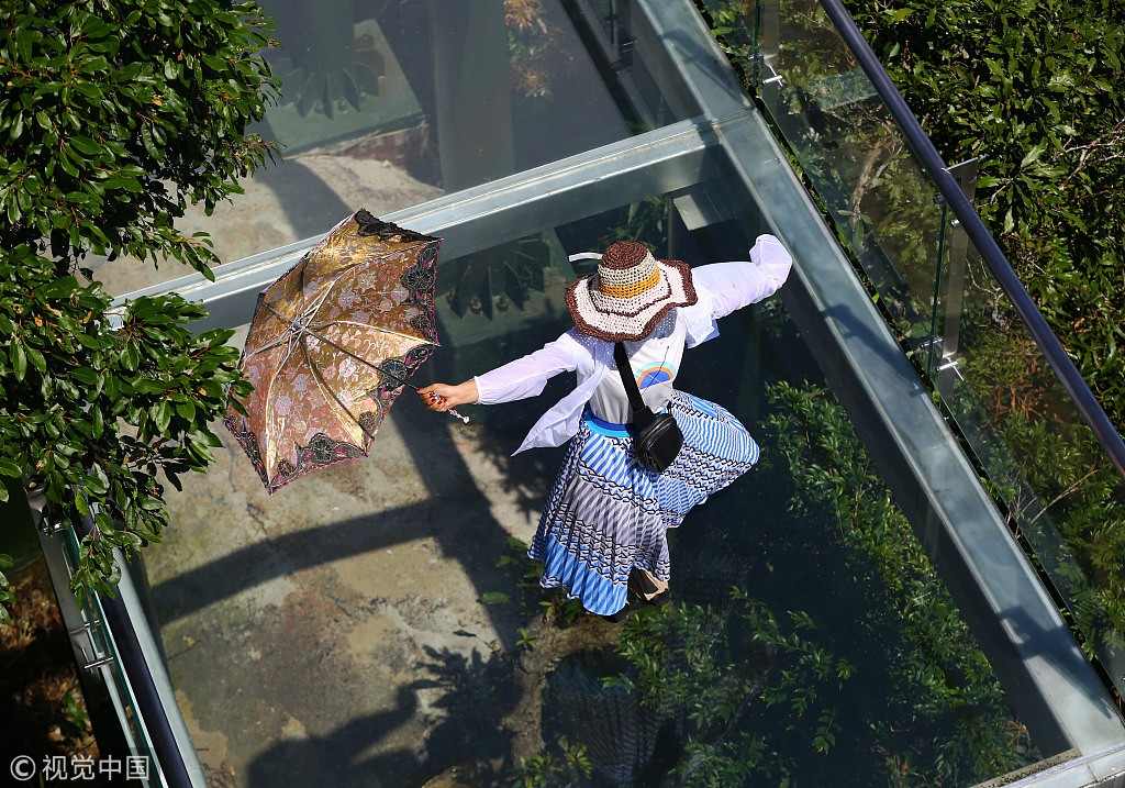 2018年9月3日,海南三亚,游客在玻璃观景平台上参观游览。