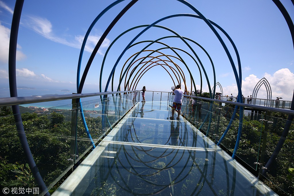 2018年9月3日,海南三亚,游客在玻璃观景平台上参观游览。