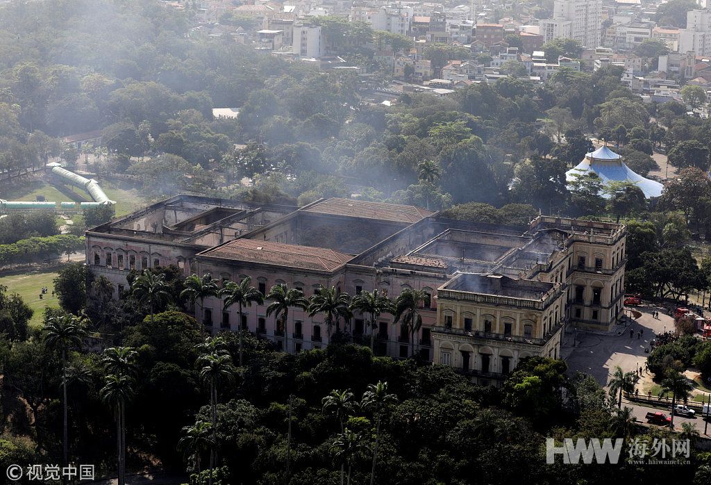 航拍大火后的巴西国家博物馆 200年历史“灰飞烟灭”
