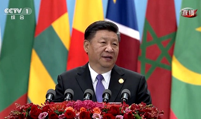 习近平出席2018年中非合作论坛北京峰会开幕式并发表主旨讲话。截图自央视视频