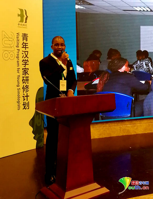 马弈男在2018年青年汉学家研修计划(北京)开班仪式上讲话。中国青年网记者 曾繁华 摄