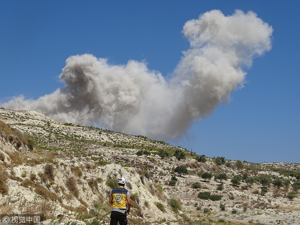 当地时间2018年9月4日,叙利亚伊德利卜,俄罗斯战机轰炸了叙利亚反政府武装控制的伊德利卜省,属三周来的首次。