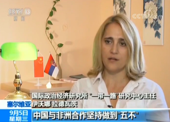 塞尔维亚国际政治经济研究所 "一带一路"研究中心主任 伊沃娜·拉德瓦茨:习主席讲话总是画面感很强,他使用许多谚语,我觉得听起来是一种享受。而这一次中非合作论坛上的讲话,我印象最深的是他提到的,中国与非洲合作坚持做到"五不”。