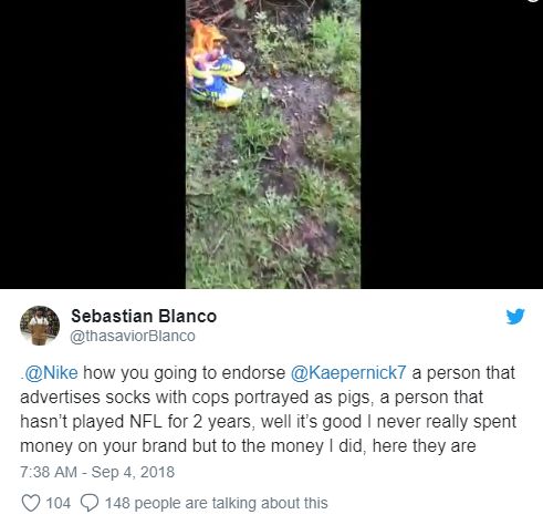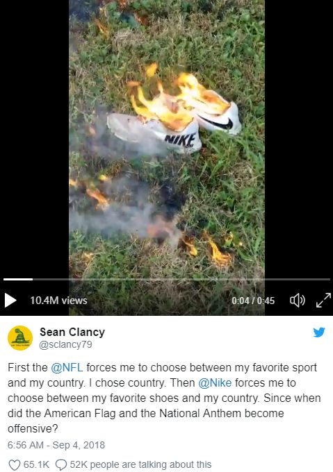 而美国的爱国群众们也纷纷录制了他们焚烧和撕毁自家耐克产品的视频和照片,然后发到网上以示抗议。
