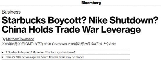 这美国人疯狂抵制耐克的一幕幕,也令几周前美国知名财经媒体“彭博社”所撰写的一篇说中国可能要在贸易战中“抵制耐克”的文章显得格外尴尬……