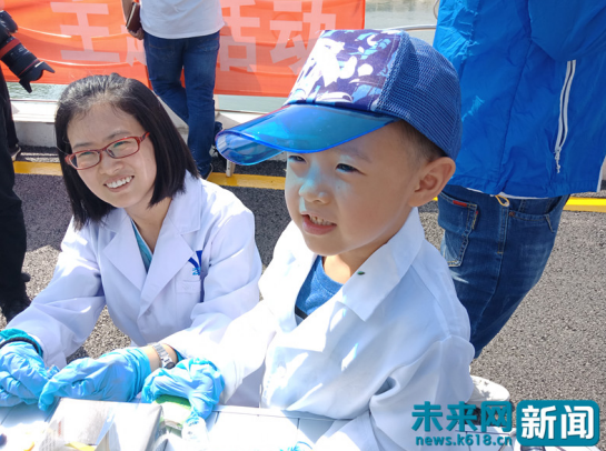 潘禹辰和其他小朋友在体验测绘工作 未来网记者 刘文静 摄