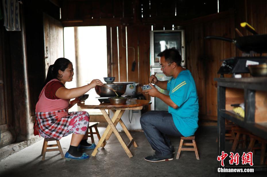 杨昌军和妻子李丽吃中午饭。 中新社发 黄晓海 摄