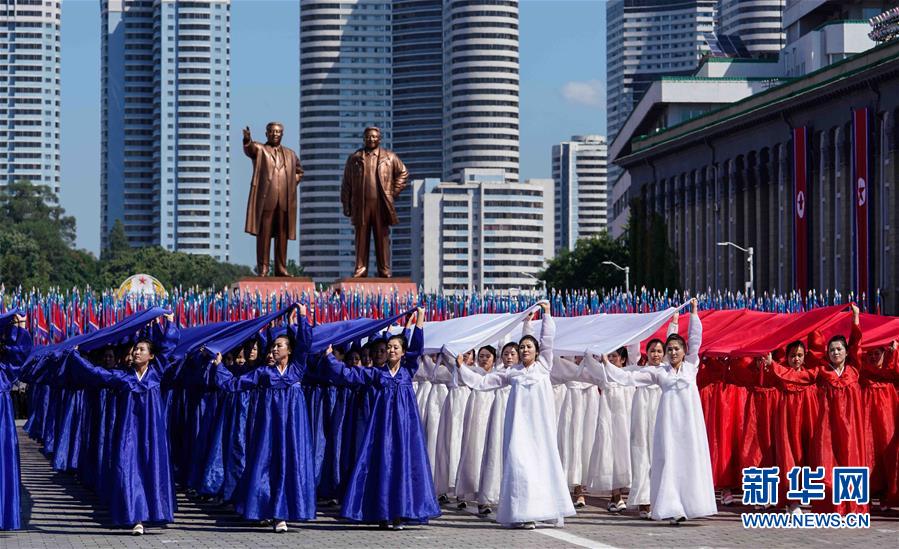 9月9日,朝鲜在平壤举行盛大阅兵式和群众花车游行,热烈庆祝建国70周年。新华社记者邢广利 摄