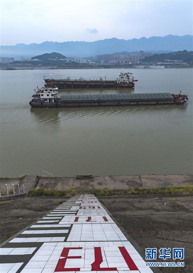 9月10日0时,三峡水库正式启动175米试验性蓄水工作,今年是三峡水库175米试验性蓄水的第11年。图为船舶从三峡大坝上游太平溪水文标尺前经过。新华社发(郑家裕 摄)