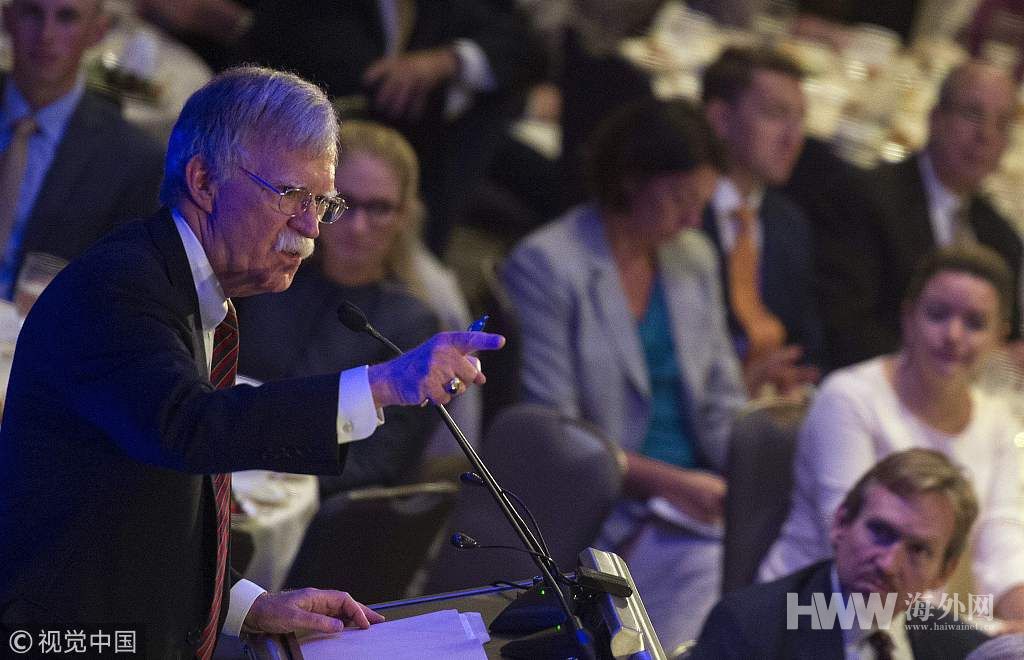 当地时间2018年9月10日,美国华盛顿,美国国家安全顾问博尔顿在“联邦主义者协会”发表午间演讲。(图片来源:视觉中国)