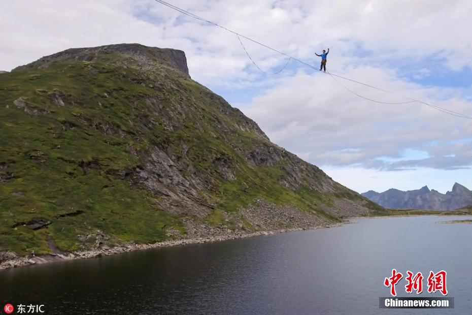 男子高空走绳2500米刷新世界纪录