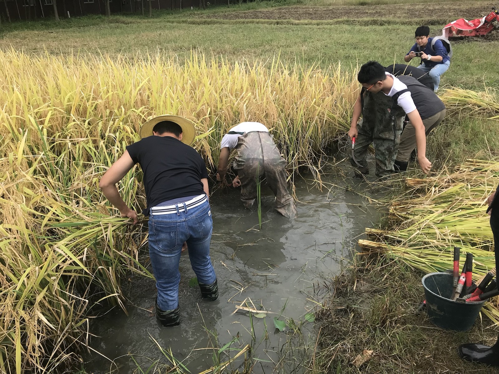 高校开"种田"课 新生插秧、割水稻挣学分