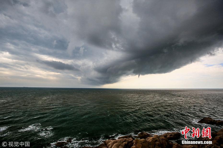山东威海现"龙戏水"自然景观 水柱直通云端