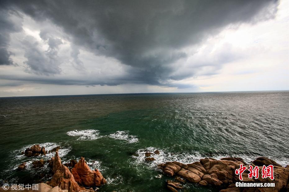 山东威海现"龙戏水"自然景观 水柱直通云端