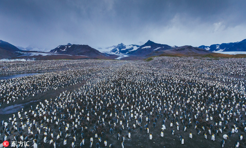 摄影师航拍国王企鹅栖息地 数万极地“萌主”扎堆蔚为壮观