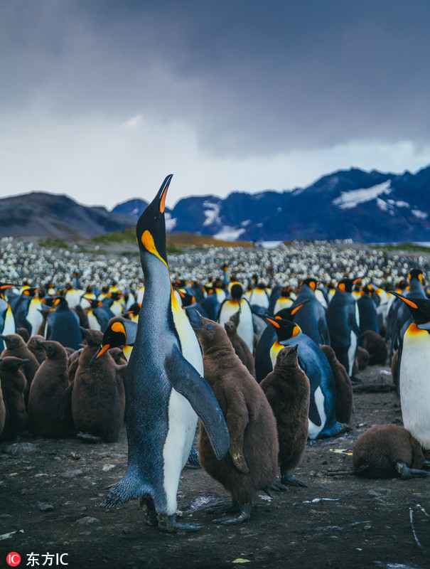 摄影师航拍国王企鹅栖息地 数万极地“萌主”扎堆蔚为壮观