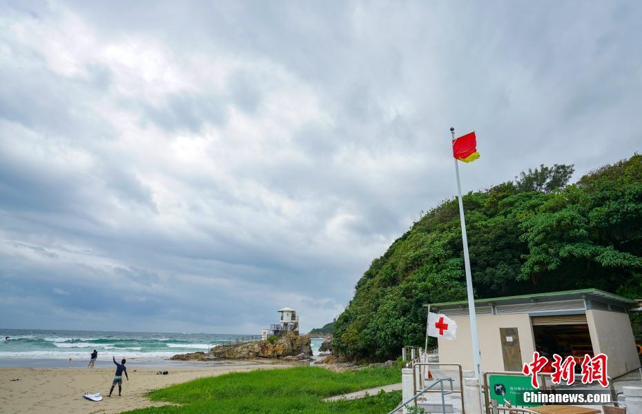 位于香港岛东部的大浪湾悬挂红旗,显示风浪较大,警告市民不要在该处游泳。 中新社记者 张炜 摄