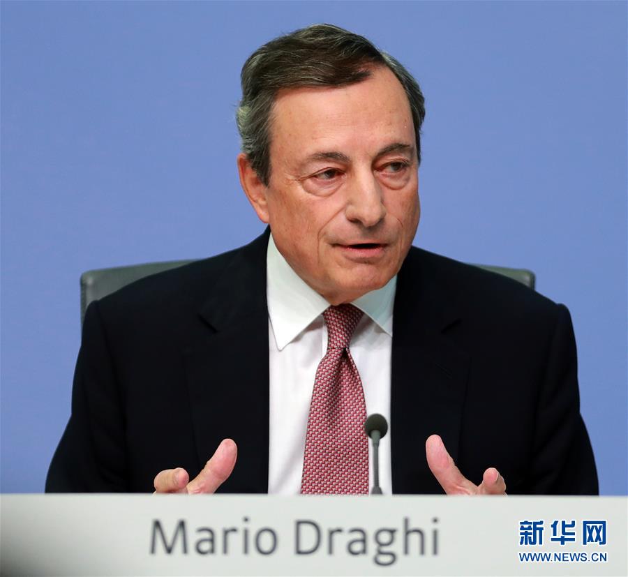 9月13日,在德国法兰克福的欧洲中央银行总部,欧洲央行行长德拉吉出席新闻发布会。欧洲中央银行13日召开例行货币政策会议,延续了7月份货币政策会议决定,继续维持欧元区主导利率为零,并预期在2019年夏天前不会加息。新华社记者罗欢欢摄