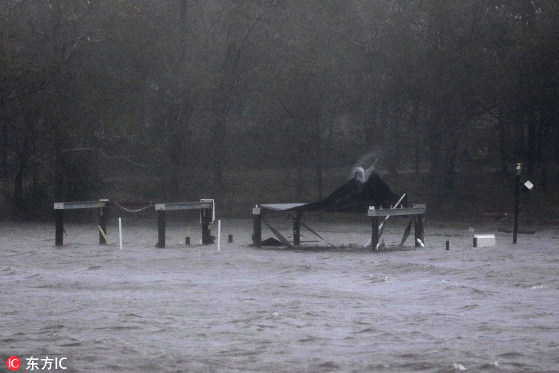 当地时间2018年9月14日,美国北卡罗来纳州斯旺斯伯勒,飓风“佛罗伦斯”给当地带来强风暴雨。