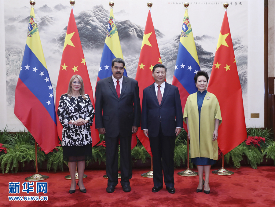 9月14日,国家主席习近平在北京人民大会堂同委内瑞拉总统马杜罗举行会谈。这是习近平和夫人彭丽媛同马杜罗夫妇合影。 新华社记者 鞠鹏 摄