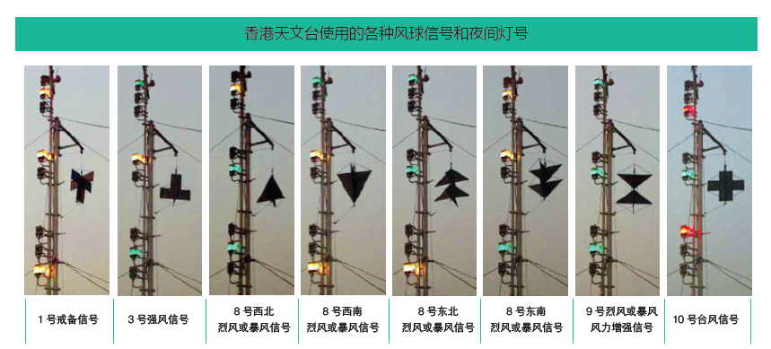 自1884年开始,香港就已经采用一套以圆柱形、球形和圆锥形(俗称“风球”,单个标示重达25公斤)为信号的系统,向港内船只发布关于热带气旋的情况及大约位置的消息。当热带气旋迫近香港的时候,则鸣炮警告居民烈风将会吹袭香港。