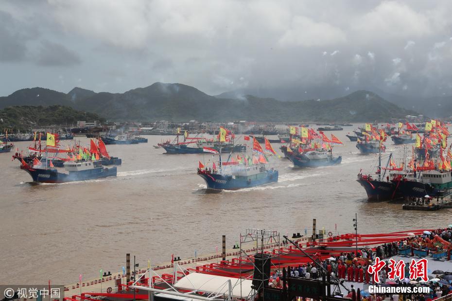 9月16日中午12时,东海伏季休渔期结束,渔船结束四个半月的伏季休渔期,奔赴东海开始生产作业。图为浙江宁波石浦港千舟竞发。张培坚 摄 图片来源:视觉中国