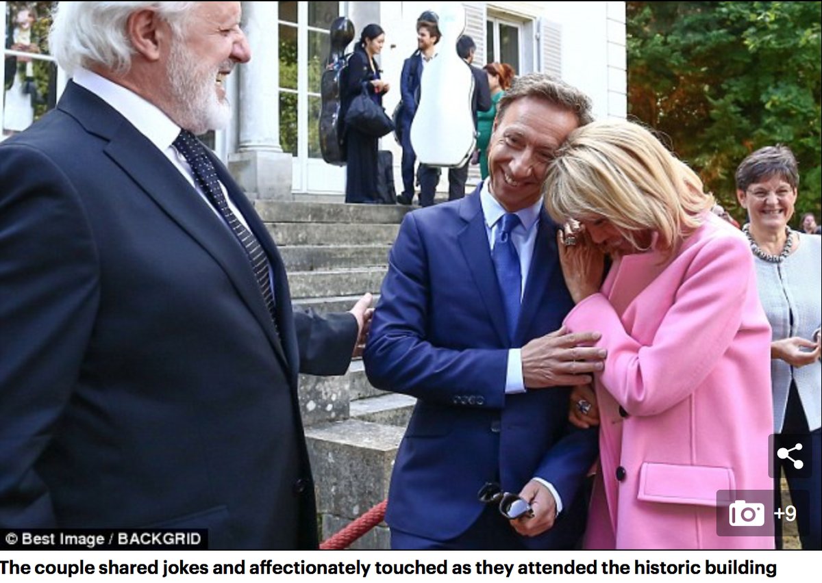 然而英国《每日邮报》似乎对马克龙和夫人之间的互动非常感兴趣。《每日邮报》刊文描述了马克龙与布丽吉特手挽着手一同参观古建筑物,布丽吉特身着粉色大衣,马克龙则穿着海军蓝的西服。文章还在图片配文中写道,“总统夫妇在参观古建筑时,互讲笑话十分亲密”,然而配图却是布丽吉特挽着主持人贝恩在说笑。